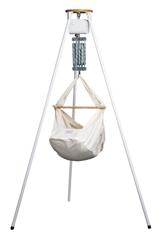 Die Federwiege verfügt über ein stabiles dreibeiniges Gestell mit einer sicheren Aufhängung, die eine maximale Belastung gewährleistet und gleichzeitig für die Sicherheit deines Babys sorgt. Mit seinem platzsparenden Design kann die Federwiege leicht in jedem Raum aufgestellt oder aufgehängt werden. Sie ist tragbar und einfach zu montieren, sodass du sie problemlos mitnehmen kannst, wenn du unterwegs bist oder deine Umgebung wechselst.